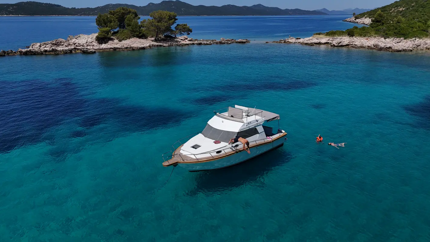 Private Elaphiti Islands Boat Tour by Ferretti 34
